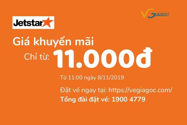 Vé máy bay khuyến mãi giá 11 000 đồng là giá vé được Jetstar thường xuyên áp dụng bán và khoảng thời gian cuối tuần. Tuần nay bạn tha hồ săn vé rẻ 11.000đ với rất nhiều các hành trình từ thành phố Hồ Chí Minh đi các điểm như: Nha Trang/ Đà Nẵng/ Pleiku/ Thanh Hóa/ Chu Lai/ Huế/ Vinh/ Tuy Hòa/ Đà Lạt/ Đồng Hới…Xem ngay trên website Vegiagoc.com nhé.